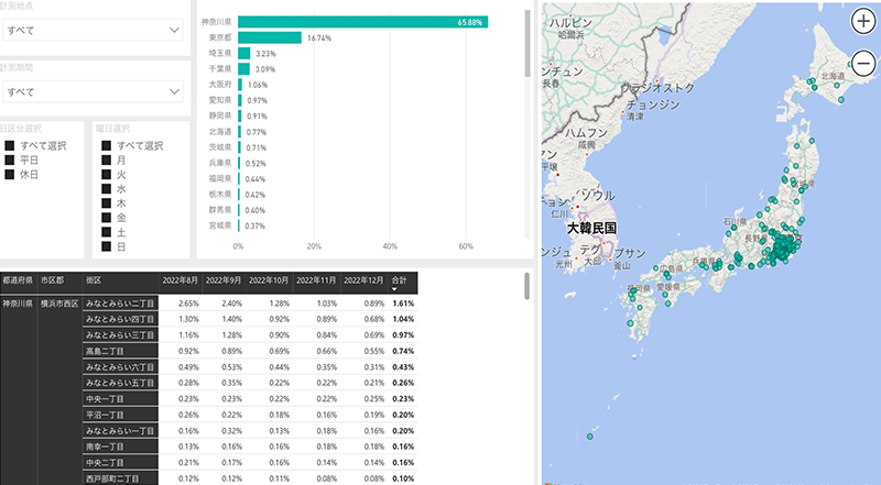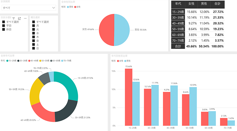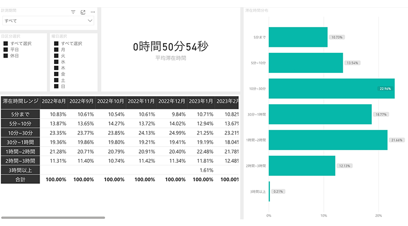 専用の管理画面でカスタマー計測・混雑分析、居住地分析など確認が可能です。